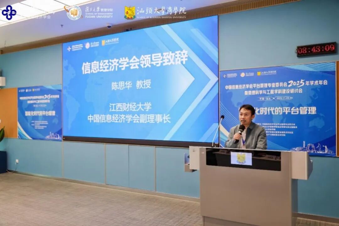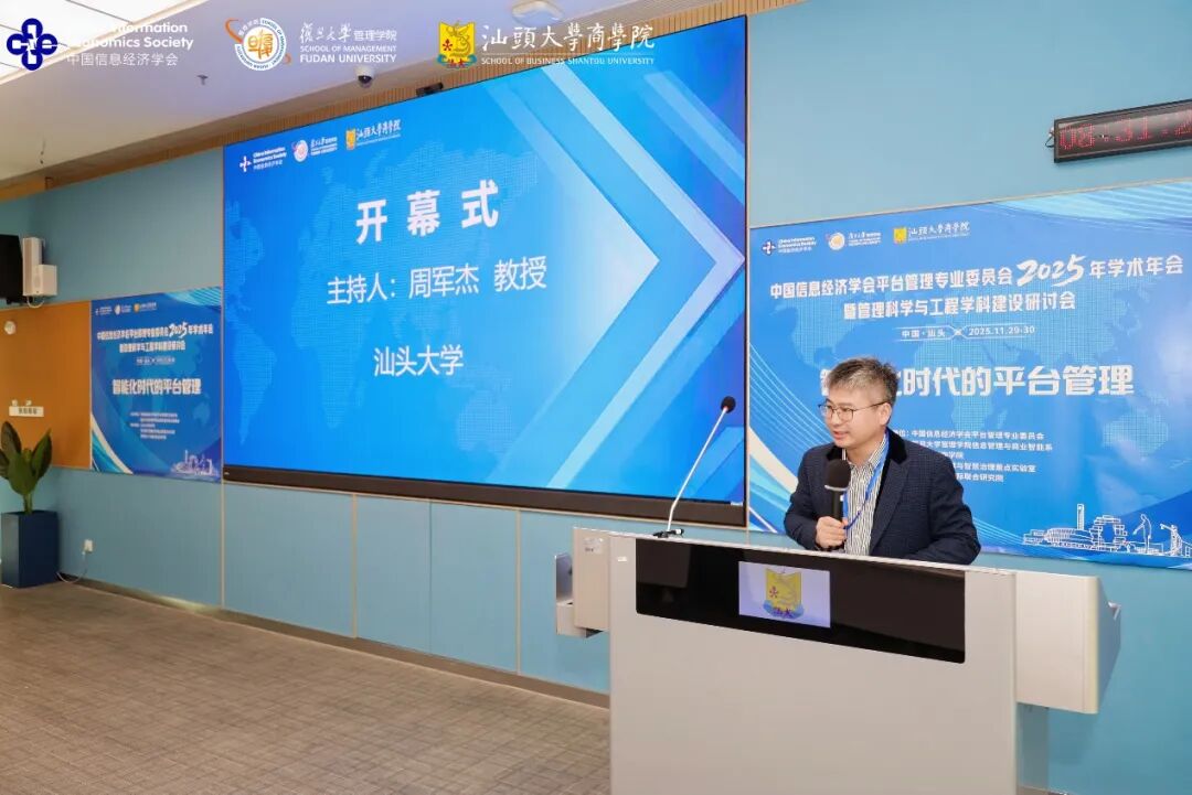 2025年11月29日-30日,中国信息经济学会平台管理专业委员会2025年学术年会暨管理科学与工程学科建设研讨会在汕头大学东海岸校区顺利举办。本次会议由中国信息经济学会平台管理专业委员会与复旦大学管理学院信息管理与商业智能系主办,汕头大学商学院、粤东数字管理与智慧治理重点实验室、新质生产力国际联合研究院承办,会议围绕“智能化时代的平台管理”这一主题开展系列专题报告、论文演讲及专家辅导、企业考察等活动,来自国内多所高校的专家学者共聚一堂,进行学术研讨交流。