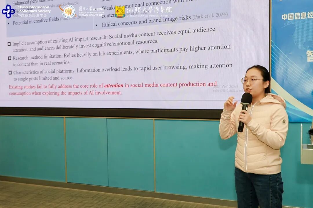 开幕式后,大会进入专题报告环节。南京大学宋培建教授首先作了题为“Plugging into Confidence: How Platform Interoperability Reshapes Electric Vehicle Charging Behavior and Charging Network Efficiency”的专题报告,分享平台互联互通策略在新能源汽车充电场景中的应用,探讨跨学科视角下的平台治理与效率优化问题。而后由复旦大学王有为教授带来题为“Platform Refund Insurance or Being Cast Out: Quantifying the Signaling Effect of Refund Options in the Online Service Marketplace”的专题报告,分析电商平台担保机制的政策评估与一刀切政策对市场的影响。紧接着,香港城市大学王翀教授作了“Hierarchical Attention Entropy: Discover Hidden Cognition-related Feature from pre-trained ANN”专题报告,探讨AI在视觉信息处理中的分层处理方式及其应用。三位专家的专题分享兼具前沿实证研究与深入理论探索,生动诠释了平台经济的复杂性与可塑性,从微观行为到宏观效率,从市场规则到技术认知,为与会嘉宾提供了独特的视角和深刻的洞见。