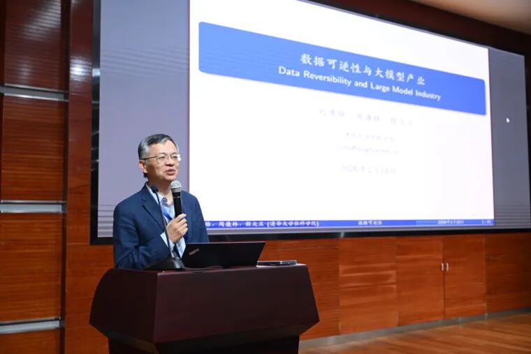 清华大学创新与发展研究院院长刘涛雄教授进行了题为“数据可逆性与大模型产业”的主旨报告。刘涛雄教授强调大模型产业发展中反映的本质特征之一是数据可逆性,并讨论这一特征如何影响领先厂商的定价策略及市场竞争结构。